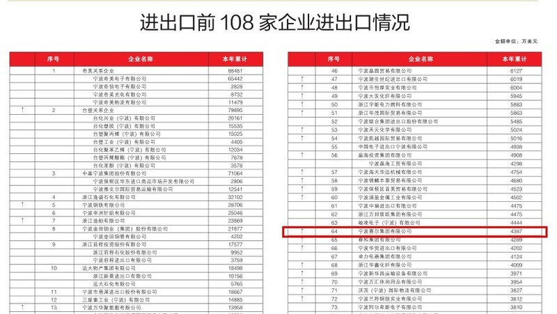 一季度寧波進出口108強榜單發布,我集團排名大幅上升