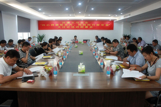 賽爾網訊  9月5日下午,民建義烏總支“同心同德聚合力、同向同行促發展”大討論活動工作部署會在我集團義烏運營中心會議室舉行,民建義烏總支三十多名會員參加。我集團義烏優訊進出口公司錢天鋒總經理作為民建會員,同時作為本次會議的接待東道主,全程參加會議。