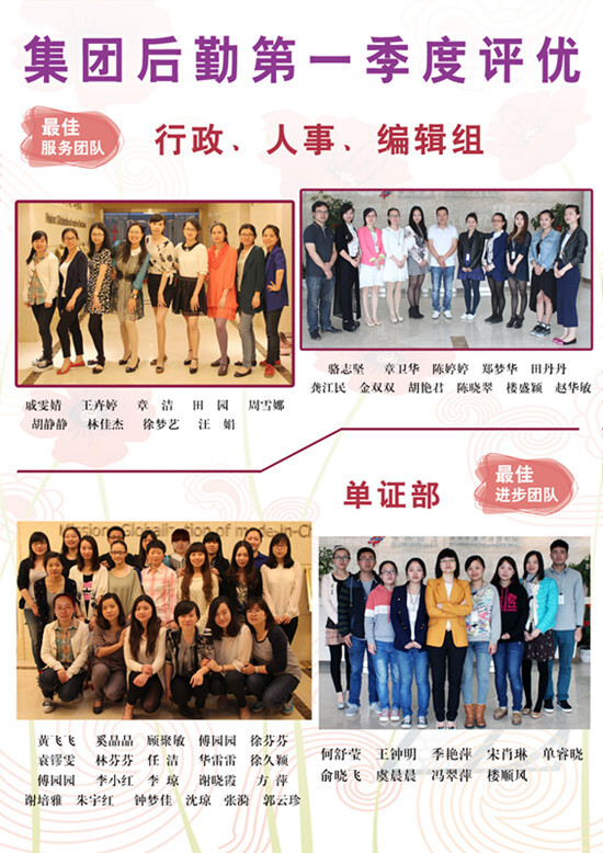 賽爾網訊 在一季度后勤評優活動中,行政、人事、編輯組榮獲“最佳服務團隊”,單證部榮獲“最佳進步團隊”獎。