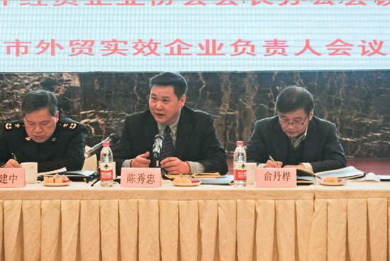 聽完企業發言后,寧波海關趙建中副關長指出,外貿企業對海關工作評價很高,寧波海關一定繼續服務好外貿企業,同時,廣大外貿企業一定要跟進了解海關改革最新舉措,熟悉并遵守相關法規,加強和海關的溝通聯系,及時將問題解決在前。俞丹樺會長講話,他要求廣大外貿企業在經濟新常態下,務必增強三種意識,即增強不斷革新的意識,努力變中求好;增強捕捉商機的意識,重視和研究國家“一帶一路”戰略、自貿區戰略等商機所在,特別要關注和參與6月份將在寧波舉辦的中國-中東歐投資貿易博覽會;增強嚴防風險的意識,認真防控進出口過程中的匯率、資金鏈、信譽等風險。最后,市商務委陳主任講話,他指出,開放優勢是寧波最主要優勢之一,外貿在開放型經濟中占有非常重要的地位,對寧波經濟、財政收入等貢獻巨大,今天到會企業均為寧波外貿的龍頭企業,進出口總額占全市進出口總額的十分之一,地位重要,寧波市商務委將大力支持外經貿企業協會的工作,確保寧波外貿穩健發展,繼續為全市經濟發展作出應有貢獻。