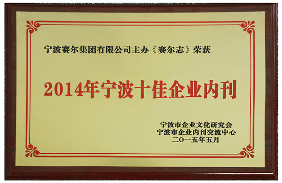 在張明華副市長、陸寧章會長等人共同啟動“2015寧波市企業文化節”后,論壇舉行了頒獎儀式。歐琳集團、市公交總公司、雅迪機車、寧波機場等5家企業入選第三批“寧波市企業文化示范基地”,賽爾集團與寧波交通工程建設、陸龍控股、浙江造船、圍海集團等10家企業共同入選“2014年寧波市企業文化建設先進單位”,我集團主辦的季刊《賽爾志》、華茂集團主辦的《華貿報》、博洋集團主辦的《博洋報》等10份刊物榮獲“2014年寧波十佳企業內刊”。