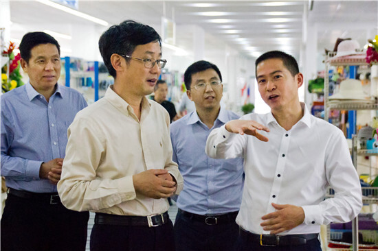王副市長(zhǎng)等首先參觀了我集團(tuán)產(chǎn)品展示中心。看到如此大空間、多樣化的產(chǎn)品展示廳,王副市長(zhǎng)高興地說:“你們這是在自辦廣交會(huì)了”。王副市長(zhǎng)步入各個(gè)系列產(chǎn)品展區(qū),詳細(xì)詢問產(chǎn)品種類、供貨來源地、外商類型及采購(gòu)方式、貨物包裝配送等情況,徐總一一作了解答,王副市長(zhǎng)對(duì)我集團(tuán)針對(duì)國(guó)外連鎖超市客戶著力打造的一站式出口產(chǎn)品采購(gòu)配送模式表示贊賞。
