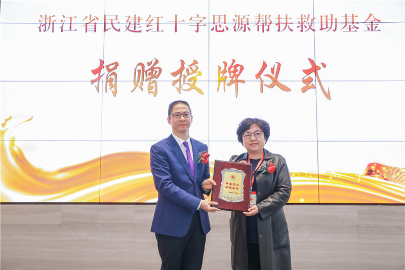 借此機(jī)會(huì),賽爾集團(tuán)向浙江省民建紅十字思源幫扶救助基金捐款200萬元,浙江省政協(xié)副主席,民建浙江省委會(huì)主委陳小平和浙江省紅十字會(huì)黨組書記、專職副會(huì)長(zhǎng)陶競(jìng)分別授予徐平炬董事長(zhǎng)捐贈(zèng)和功德牌匾。