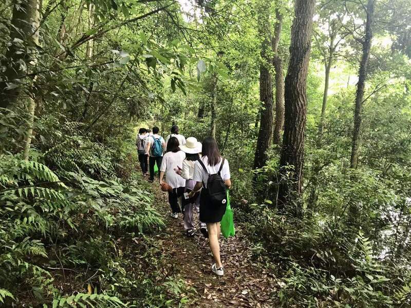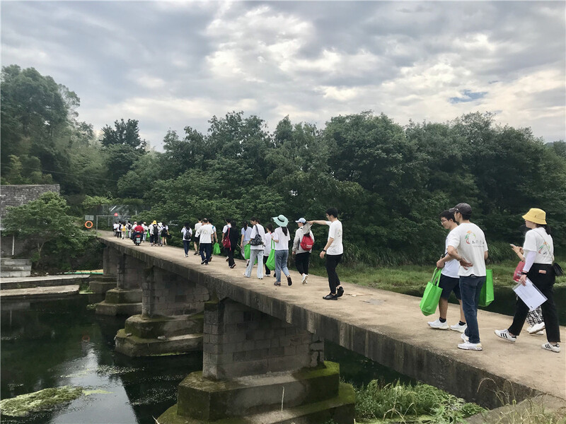 上午9點半抵達(dá)活動點,工作人員為大家分發(fā)了活動“裝備”——綠色環(huán)保袋和長柄架,隨后由用人部門領(lǐng)隊,分三個小組依次進(jìn)入鄞江古道。同學(xué)們一邊走一邊將路邊的垃圾撿入環(huán)保袋中。由于前一晚的大雨,山路崎嶇泥濘,道路積水濕滑,大家相互幫助,“一步一個泥印”走完了全程。在終點合影留念后,乘坐大巴車前往午餐地點。