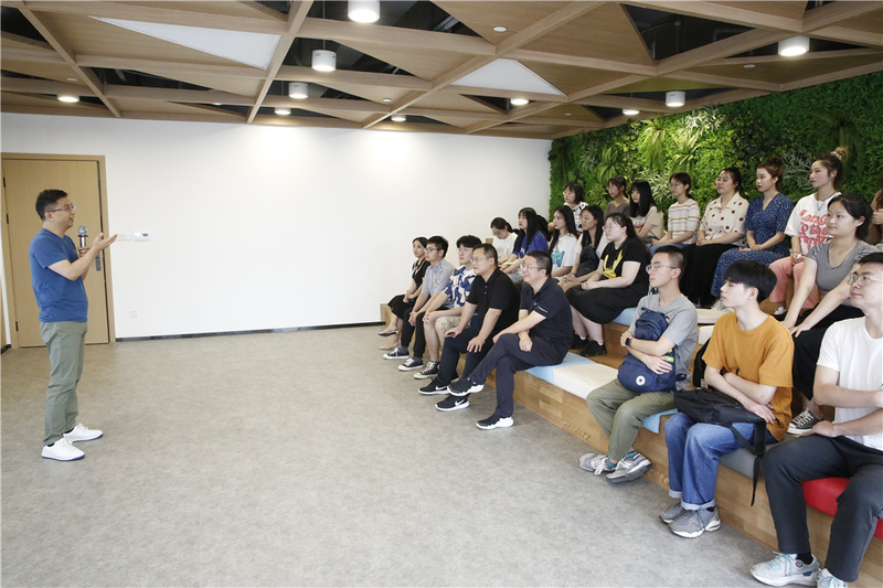 集團副總裁方永強和人力資源部副經(jīng)理蔣麗妮帶領(lǐng)老師同學參觀了集團文化展廳、樣品展示中心和2樓功能區(qū),向大家介紹了集團發(fā)展歷程、業(yè)務(wù)布局和經(jīng)營機制,同學們對集團發(fā)展和辦公環(huán)境表示充分認可。