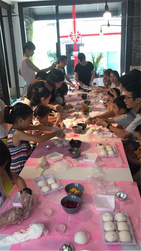 飯后,我們親手制作了甜品雪媚娘。在老師的悉心指導(dǎo)下,每位孩子都做得非常認(rèn)真,從撐皮,到擠奶油,再到合縫裝盤,一氣呵成。最終每組家庭都帶回了一盒自己親手制作的雪媚娘。