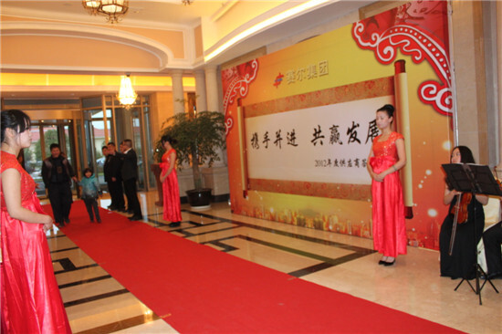 賽爾網訊 12月26日,集團在義烏幸福胡國際會議中心隆重舉辦了“攜手并進,共贏發展”2012度供應商答謝會。本次活動共邀請到了190位供應商朋友與嘉賓,同時到場的還有義烏市中國銀行、浦發銀行的代表以及對今晚答謝會進行跟蹤報道的記者朋友!此次活動也得到了寧波地區和義烏地區兩個地區供應商朋友們的積極支持和熱烈響應。