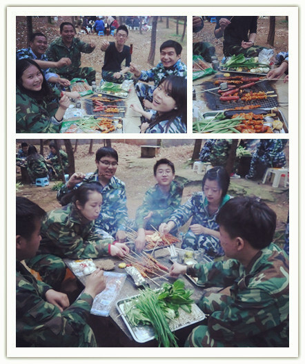 有的同學(xué)就充當(dāng)起了新疆買買提,刷油,撒調(diào)料,有板有眼,還挺像那么回事兒的。串門子的同學(xué)也挺多,別人在烤,他卻在旁邊偷著吃,這個組吃一點兒,那個組吃一點兒,溜達(dá)得那個勤快