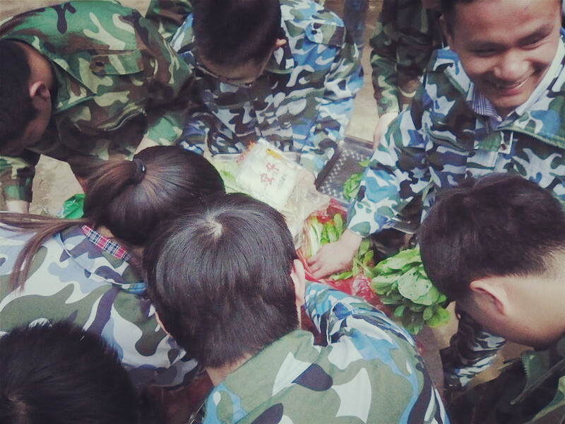 太陽當(dāng)頭照,破冰游戲之后的我們又累又餓,開始上演搶食材一幕