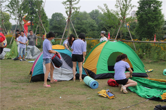 傍晚,大家在老師的指導下開始安營扎寨,布置溫馨的帳篷。很多人都是第一次體驗露營,充滿了新奇。