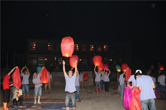 吃完自助燒烤的晚餐后,篝火晚會也在兔子舞中歡快地開始了。在篝火的映襯下,每個人的臉上都洋溢著幸福和喜悅。2013新進的員工做了自我介紹和才藝表演,讓大家更加深刻地認識了彼此。每個夢想隊的小品也是精彩不錯,爆笑不斷。晚會結束,大家各自在孔明燈上寫下愿望,向天空放飛希望,舉頭仰望,為自己加油,為賽爾祝福。
