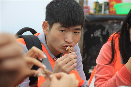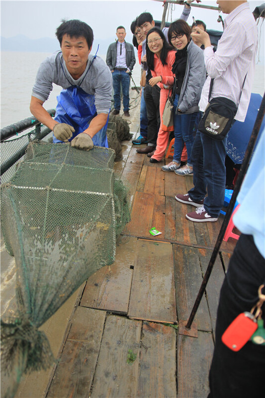 任船身隨浪搖擺,享涼爽海風吹拂,馬達聲里,陸地逐漸退遠,極目遠眺,前方海天一色,煙雨濛濛。殷師傅為大家講起這里的人文地理、海鮮趣聞如數家珍,大家也聽得出神。船老大在大家的大呼小叫中嫻熟地收網捕魚,蝦兵蟹將在網籠中活蹦亂跳。大家賞海景品海鮮,其樂融融。
