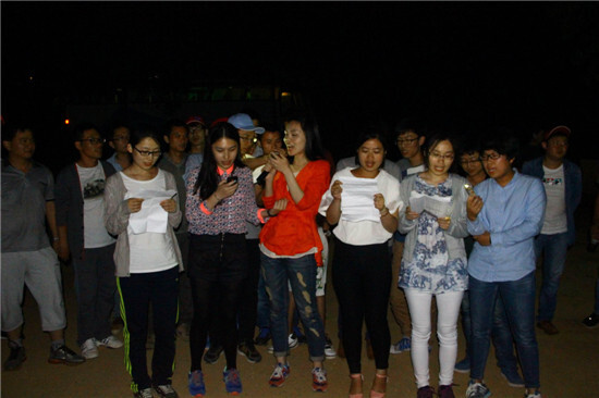 籃球賽結(jié)束后,迎來的是一頓菜多肉少、僧多粥少的晚餐,之后就是大家的自由活動時間了,在那風高黑夜,有人沿著山路找尋著傳說中的南北湖,有人干脆回房牛牛了,也有人玩起了殺人游戲。