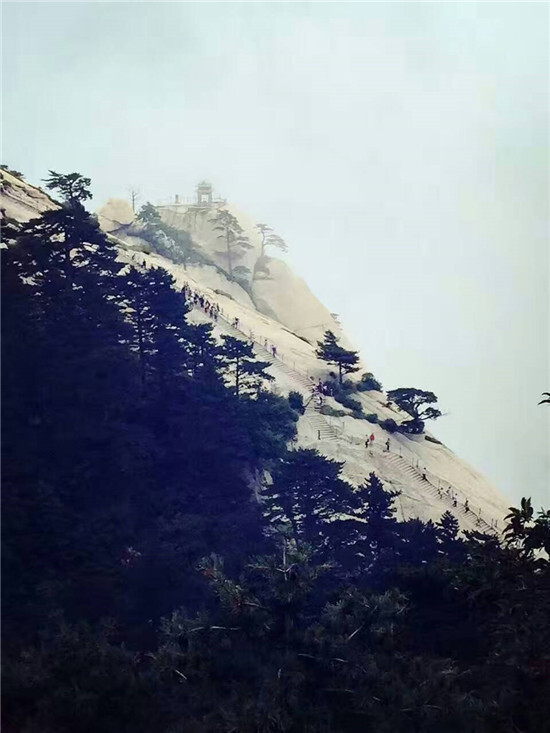 既到西安,必去華山。華山海拔2155米,出于時間及體力的考慮,我們選擇坐太華索道直達峰頂。到峰頂后沿著路標,一路逛過楊公塔、金天宮、避詔崖、長空棧道等景點。時不時俯身鳥瞰,腳下風起云涌,山壁倚天拔地,四面如削,親身體會了一把“天下第一奇山”的險峻之姿。