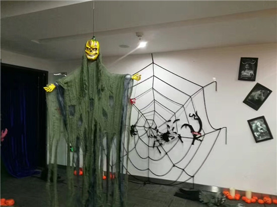 “無鬼不萬圣”,萬圣節作為西方國家的神秘節日,自然少不了扮鬼,為了讓伙伴更好的感受到鬼魅、活潑的節日氛圍,31日一早,行政部的同事便聯合布展公司對會場進行一番精心裝扮,會發出鬼聲的南瓜燈、滿地爬的小鬼、形狀詭異的骷髏、散落各地的蜘蛛網、廁所扶手旁沾滿鮮血的斷手,還未開始,便已經讓伙伴對這場魔幻夜充滿期待。