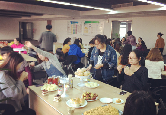 11月18日,優(yōu)勝國貿(mào)迎來11歲的生日,當(dāng)天下午,寧波義烏兩地都準(zhǔn)備了美味的下午茶,優(yōu)勝同事歡聚一堂,共同慶祝。