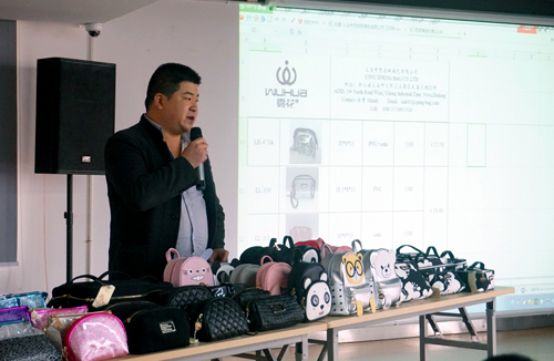 義烏思波琳箱包公司總經理黃央介紹了其專業生產的“霧花”牌化妝包、手包、背包等系列產品。該公司重視產品創新,在廣州和義烏都設有研發中心,產品設計別致,獨具匠心。產品質量也相當過硬,均已通過ISO9001質量體系認證和BSCI驗廠。