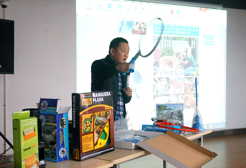 磐安豪川模具塑膠廠主要生產花園園藝產品及衛浴、寵物用品等,產品品種達40余種,產品遠銷全球各大超市,并參加過多次電視購物活動。會上,總經理林長征重點介紹了汽車遮陽擋、洗狗器、水過濾器等幾款創意新品,讓參會人員大開眼界。