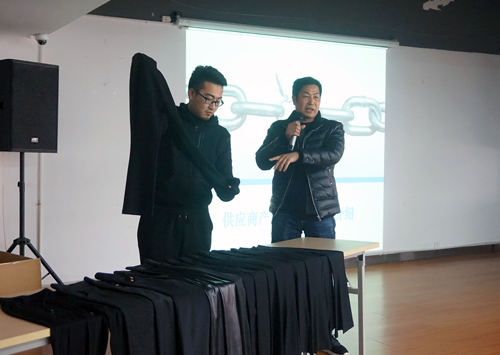 當天,專業生產打底褲的浦江康之秀服飾公司總經理張文杰恰巧前來拜訪,他認為推介會形式很好,立馬拿了樣品和名片要求參加。在會上,他詳細介紹了工廠情況和打底褲材質、款式、生產工藝流程及市場定位,真誠尋求更多合作。