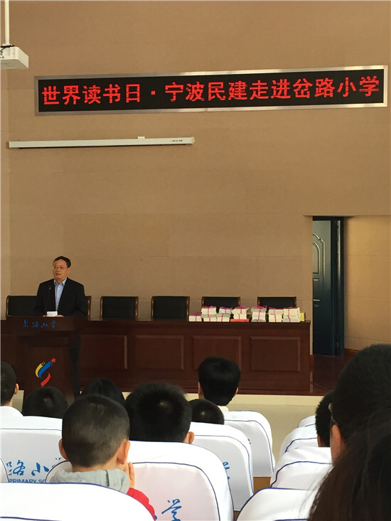 4月22日上午,在第22個“世界讀書日”來臨之際,寧波民建會員在寧波市政協(xié)副主席、民建寧波市委會主委張明華的帶領(lǐng)下來到寧海縣岔路小學(xué),開展“讓我們在閱讀中一起成長”為主題的民建“同心閱覽室”成立暨贈書活動。