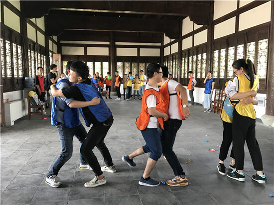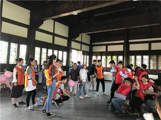 中午稍作休息之后,我們開始了今天的重頭戲,團建小游戲。首先是雙人運氣球,即是比拼速度也是考驗策略。有的團隊為了求快,氣球吹得太小,反而花了很長時間爆破氣球。另一個游戲是氣球不落地,大家紛紛展示出各種姿勢,在吹落敵方氣球的時候又及時挽救自己的氣球,虞浩君的一個鯉魚打挺贏得了陣陣掌聲。最后一個環(huán)節(jié),也是最考驗團隊協(xié)作的一個游戲-齊心協(xié)力站起來。8位隊員坐在地上,要靠隊員之間的借力,不用手撐地而站起來。在10多分鐘的練習之后,幾組團隊漸漸掌握了訣竅,不斷突破,從8秒到3秒,挑戰(zhàn)的時間越來越短,成功率越來越高。相信這也是大家在工作中不斷創(chuàng)新,不斷進步的縮影。