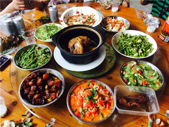食材準備完成后,就要開始生火做飯了,大家各自做自己的拿手菜,兩個大菜紅燒肉和小龍蝦則是等著我們丁隊了。小伙伴都在一旁圍觀丁隊做紅燒肉,學習討教紅燒肉的做法。肉一上桌,大家就開始吃起來了,味道一點也不亞于飯店。最后上桌的是一大盤香辣可口的小龍蝦了,不,應該是一盆!上龍蝦時大家看似平靜,內(nèi)心早已風起云涌。酒足飯飽后,大家收拾好東西,盡興而歸。