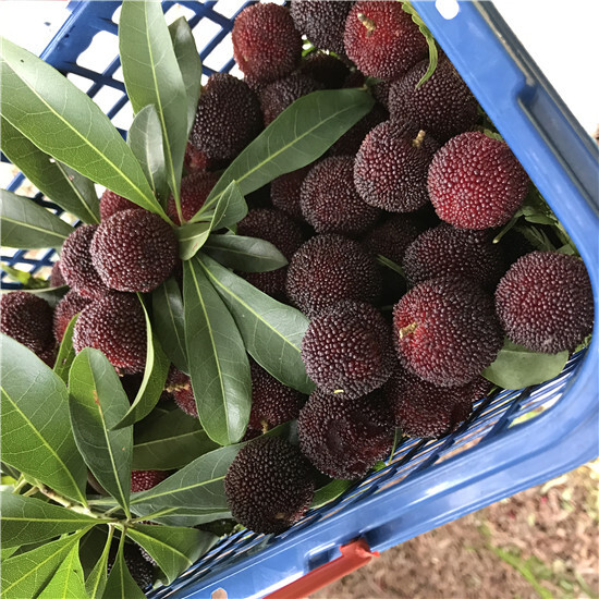 上午10點(diǎn),我們一行17人驅(qū)車抵達(dá)余姚梁弄的邱家楊梅基地。放眼望去盡是漫山的楊梅樹,小伙伴們一下車就立馬迫不及待地提籃上山,采摘楊梅。枝頭一顆顆紅得發(fā)紫的楊梅,甜中帶酸,刺激著每個(gè)人的味蕾。大家一邊摘一邊吃,籃子里始終滿不起來。很快大家被楊梅填滿了肚子,索性也不摘了,直接到山下選一籃專業(yè)師傅摘得黝黑黝黑的楊梅。