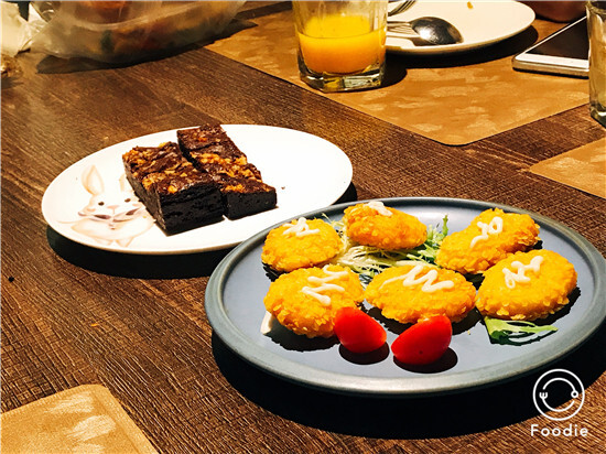這次聚餐我們選在了義烏田畈西式簡餐,感受了網(wǎng)紅美食的魅力。提前預(yù)定的田畈秘汁烤全雞果然沒讓我們一行人失望,肉質(zhì)鮮嫩,手撕過癮,多吃不膩,但貌似廚師大神今天用力過猛抖了太多鹽,不過口感還是極佳的。黑椒牛柳意面、芝士蓋飯、香酥鱈魚、焗大蝦、凱撒沙拉、鮮嫩牛排還有美味的披薩都很驚艷。好在這次留了胃給飯后甜點堅果布朗尼,濃郁的巧克力加上脆口的堅果,層次分明口感特別棒,飯后嘗一塊真是享受。