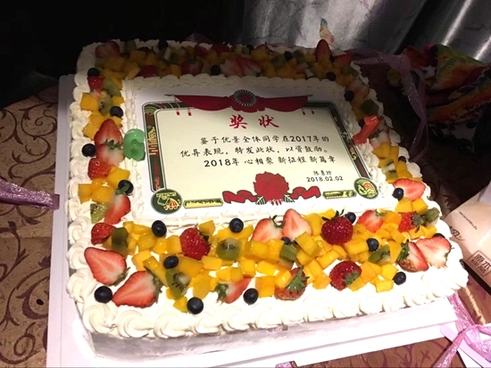 中場時間,工作人員端上了6周年蛋糕,陳勇珍副總裁還特別為此題了字,表達了對優(yōu)景大家庭在2017年取得驕人業(yè)績的肯定以及2018的新年祝愿。蛋糕趴結束,Bose音響、掃地機器人、空氣凈化器、電子閱讀器、行李箱,還有金額不等的紅包就上場啦,讓大家拿獎拿到手軟,晚會的氣氛也一直處于高潮中。最后,侯總還額外增加了特等獎,以鼓勵大家更加努力,團結奮進,再創(chuàng)佳績。