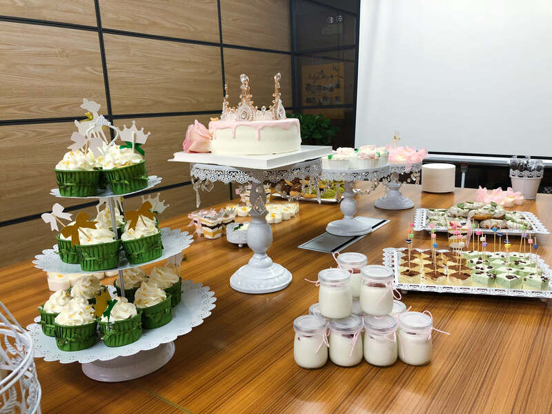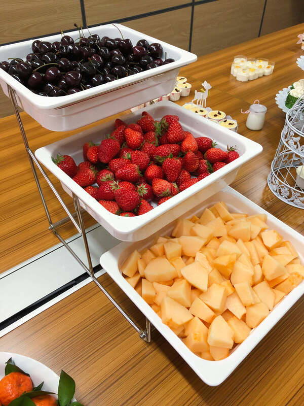 當女生們還沉浸在收到鮮花禮品的喜悅中時,精美的下午茶便出現(xiàn)在大家眼前,數(shù)十種甜品,加上車厘子草莓哈密瓜等各種水果,惹得集體男同胞們羨慕不已。幾分鐘后,所有美食被一掃而空,真是滿足。