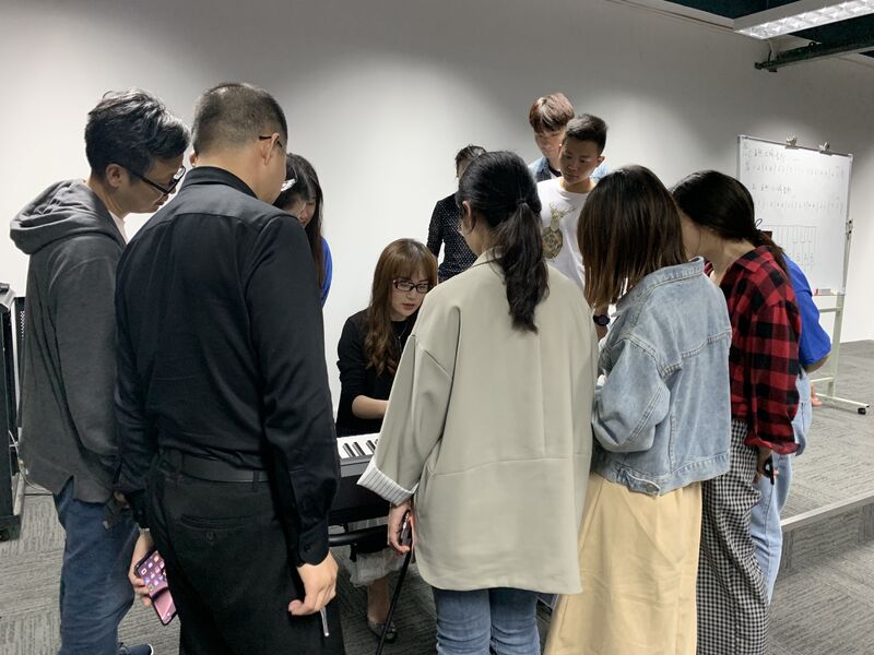 學員們認真且專注,一時間教室里響起一陣陣 “si”、“mi ma mi”的聲音。隨后,通過電鋼琴的配合,學員們在老師的講解和示范下進行了單個音的發(fā)聲練習,原來簡單的do、 re、 mi 、fa、 sol、 la、 si 、do都有著它們各自的性格,老師生動活潑的講解和穿插的小互動讓原本枯燥的基礎練習充滿了歡聲笑語。最后,配合著老師的琴聲,課程以一首悠揚的《送別》唱曲圓滿結束。