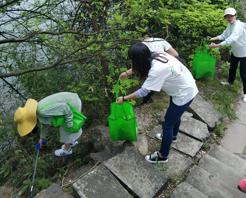 四月的德勝巖群芳吐露,萬物復蘇,一路上青山綠水。然而那路途邊出現的塑料瓶、包裝袋、煙頭卻顯得與環境格格不入,破壞了這如詩如畫的美景。我們此行最重要的任務就是要盡力處理掉這些垃圾,還大自然一片綠意和一份潔凈。
