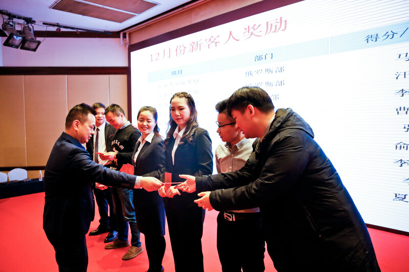 單證部門及財務部門首先公布了2019年的業績和目標完成情況,主持人蔡總宣讀了年度擬提拔、獲優人員名單及評述,隨后陳總對提拔和獲優人員進行表彰。緊接著各主要部門負責人分別做總結展望,2020年他們將帶領團隊創造更加優異的成績。