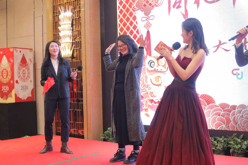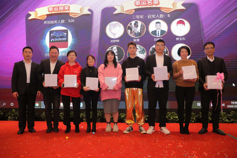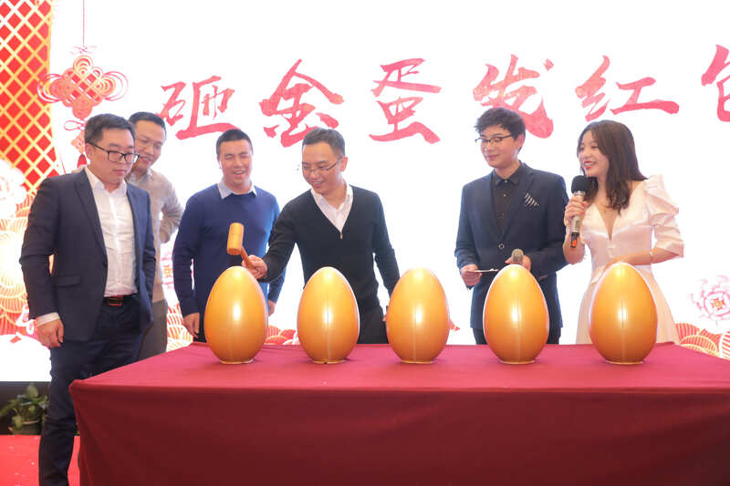 舞臺一隅堆積如山的獎品更是讓人抽獎抽到手軟,最后一輪的砸金蛋環節也是驚喜連連,四位老總熱情上臺,砸的是金蛋,發的是紅包。會上330多位小伙伴隨著老總們不間斷的紅包浪潮更是體現拼手速攢人品的時刻。精彩的節目和歡樂的領導層互動游戲將晚宴推向一波又一波高潮,大優訊年會盛典在一片歡聲笑語中圓滿落幕。