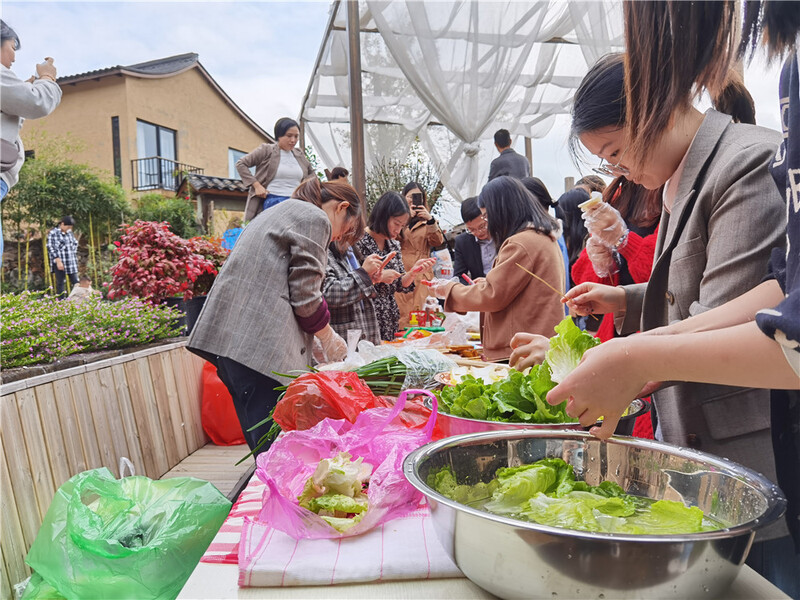 一入深山,壯麗秀美的自然風(fēng)景映入眼簾。稍作休整后,我們便開始了今日重頭戲——燒烤。洗菜、擇菜、穿串兒、生火、燒烤,大家一邊干著活兒,一邊品嘗著美食。期間,大家一起聊天做游戲,可真是美哉樂哉。
