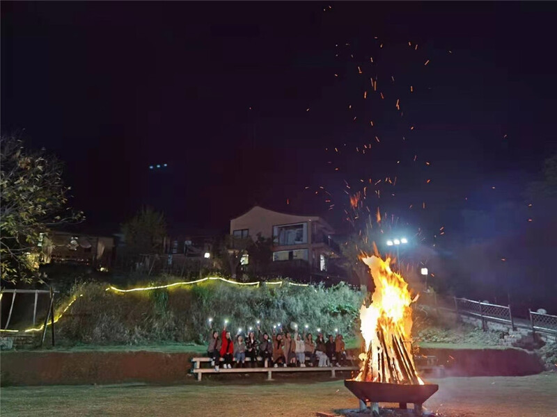 晚飯后,小伙伴們?cè)诼斓男强障聡@火堆唱歌跳舞,堆簇而立的火光將每個(gè)人的笑臉都映照得更加明亮。古村的夜晚,安逸又溫暖。