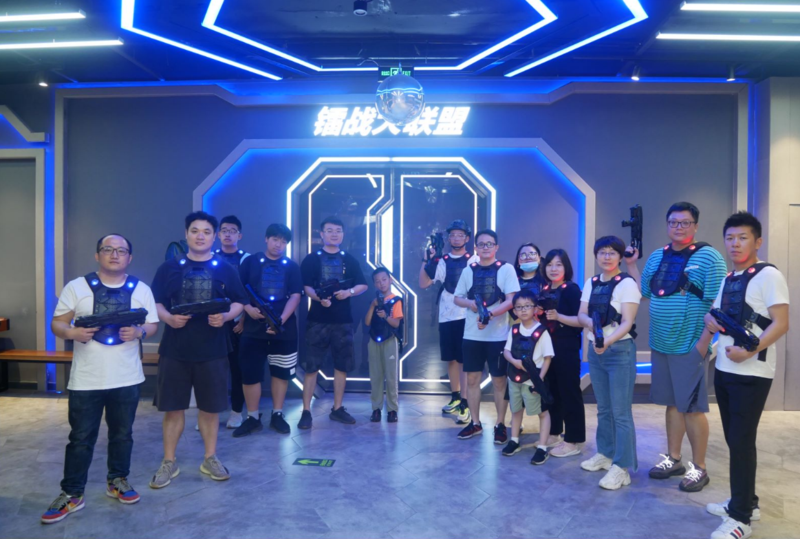 隨后,我們來到了綠地繽紛城的高科技“鐳戰(zhàn)大聯(lián)盟真人cs”。大家按順序穿好了感應(yīng)服,分成兩隊后,教官開始給我們講解槍支使用方式。試槍結(jié)束后,“戰(zhàn)爭”便開始了。全程分為四種主題模式,四場積分累計,每場大概15分鐘左右,中間有休息的時間,每場結(jié)束都能在外面看到個人團隊的戰(zhàn)績。大家都非常認真,每場結(jié)束后,各個大汗淋漓,氣喘吁吁,極大的運動量讓大家釋放了在工作中的壓力。