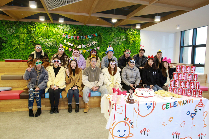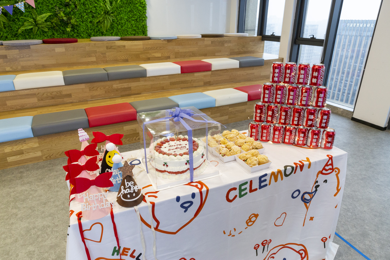來到27樓知行合一教室,一走進便看到“Happy Birthday”的掛旗以及擺放在桌子上精美的草莓蛋糕和泡芙。16位伙伴坐在一起,聽著生日祝福歌,氣氛十分融洽。拍照道具也十分的搞怪和用心,有各式各樣的眼鏡和帽子,集體照拍出來效果也很可愛。期間進行了切蛋糕和游戲環節,筆者被抽中為大家唱了首歌,得到大家對我的鼓勵。生日代表著自己長大一歲,能與這么多小伙伴一起見證成長是件幸運的事情,離場之前收獲到公司準備的印刷著各自名字的定制版可樂,讓人心生暖意,感受到策劃組的同事的用心。