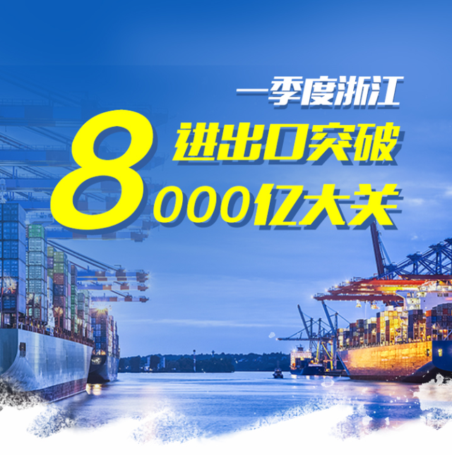 今年一季度,浙江省進出口突破8000億元大關,達8619.0億元,同比增長37.2%;其中出口6137.9億元,增長39%,進口2481.1億元,增長32.9%。尤其是3月,浙江進出口2898.9億元,出口1902.4億元,均創歷年3月新高。