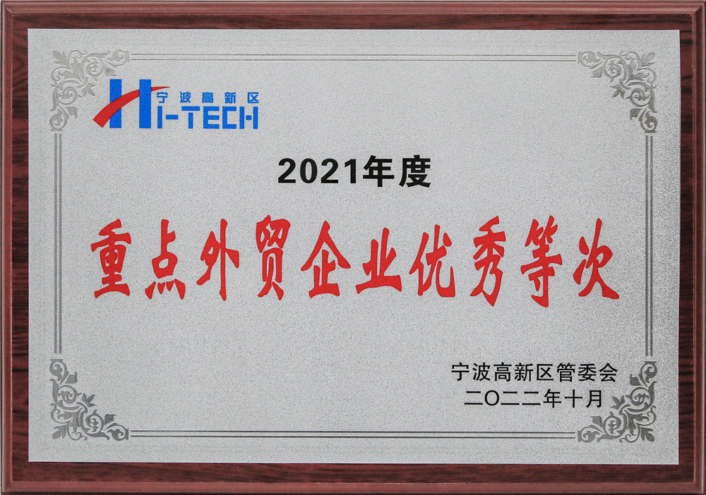 優遠公司榮獲高新區2021年度“重點外貿企業優秀等次獎”
