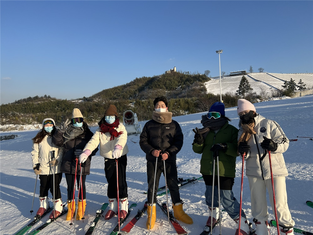 換好專業(yè)的滑雪設(shè)備之后,我們這群新手開(kāi)始嘗試滑雪初體驗(yàn)。由于技術(shù)不到位,大家摔得前仰后合,好在氛圍是開(kāi)心快樂(lè)的,大家都沉浸其中。兩小時(shí)的滑雪時(shí)間很快過(guò)去,大家合影留念后便帶上裝備離開(kāi)滑雪場(chǎng),一起吃了晚飯,回到酒店后又一起相約泡溫泉,驅(qū)一驅(qū)身上的寒氣。