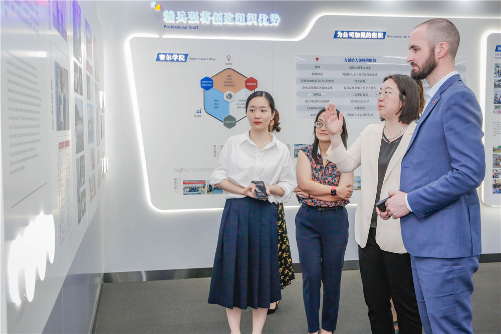 行政副總方芳首先帶領來訪團參觀了企業文化展廳和樣品展示中心,介紹了公司發展歷程、企業文化、業務市場分布、生態圈體系建設等情況。她表示,賽爾深耕消費品進出口領域26年,三十幾個大類數萬種產品覆蓋全球120多個國家和地區,擁有10000多家全球客戶和10000多家國內供應商。客戶區域和結構持續優化,除歐美主營市場外,澳大利亞市場也具備一定規模和體量。近年,賽爾逐步向跨境電商、國際物流、定制旅游、商務會展、國內電商、數字營銷、雙循環數字生態園等領域不斷延伸拓展,取得了良好的發展成效,增強了供應鏈韌性,提高了企業競爭力。