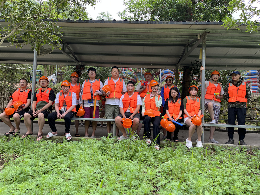 順著板道往上走,穿過武嶺門,進入武嶺學校,獨具民國風格的建筑呈現眼前。教室原址播放著這所學校的歷史,博物館的墻上羅列著當地的名人名士。12點半,大家再次在餐廳門口集合,共同前往今天的漂流地點。巖頭古村漂流被譽為浙江第一漂,深受大家的喜愛。到達后,大家各自領取并佩戴了安全衣與安全帽,排隊進入漂流點。排隊時,早有小伙伴掏出準備已久的水槍躍躍欲試。大家兩人一船,陸續開始活動。過程中,小伙伴們將安全帽作為潑水容器,玩得不亦樂乎,中間還有其他公司的團建隊伍參與到我們的潑水大戰中來。