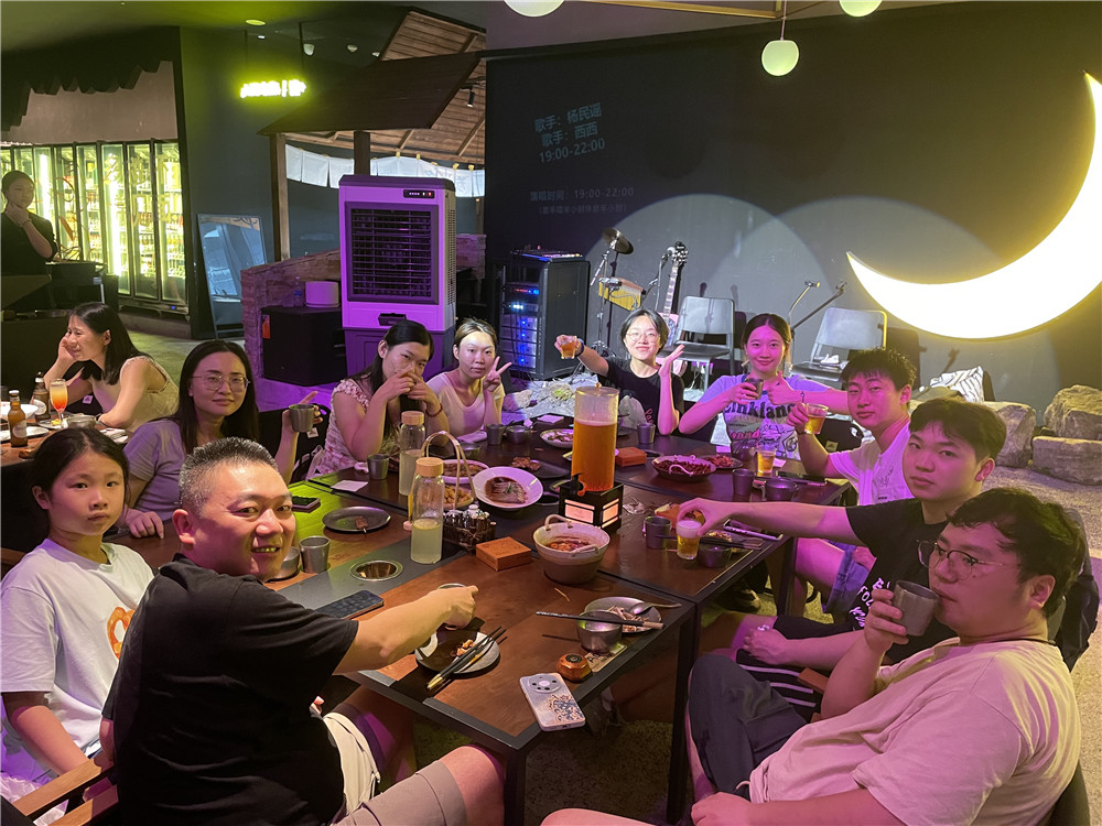 上岸后,我們直奔超有氛圍的餐廳開始香氣四溢的燒烤盛宴,滋滋冒油的肉串、鮮香海鮮,剛剛夜劃完的我們哪擋得住這誘惑。駐唱老師帶來大家從小哼到大的歌曲,現場歡快的氛圍直達頂點。大家跟著節奏搖擺哼唱,舉杯暢飲,大快朵頤。