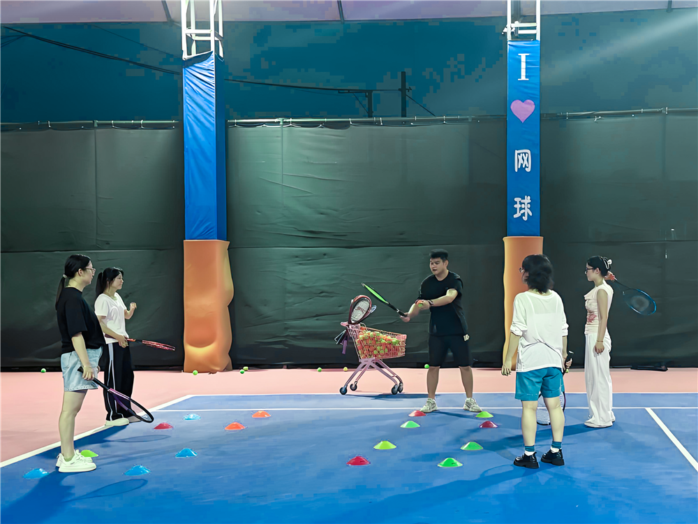 基礎球感初具雛形后,社員們開始互動實戰。過程中,教練即時對大家的手部動作、腳步動作、揮拍動作和力度進行精細化調整,保證大家動作的標準性。
